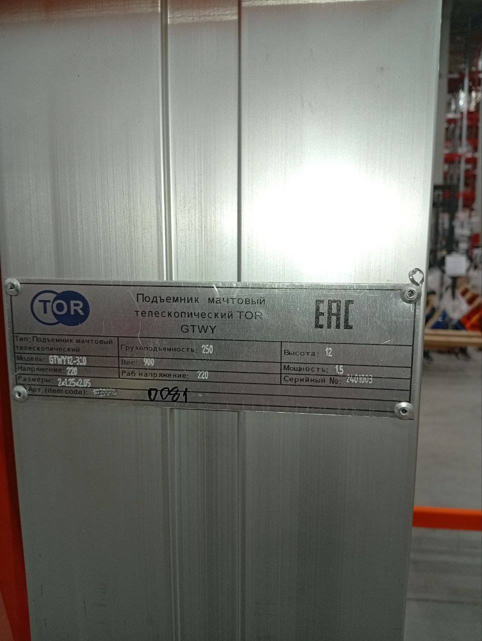 -----Подъемник мачтовый аккумуляторный 250 кг 12/14 м TOR GTWY12-320 DC (G)