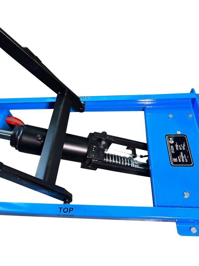 - Рычаг для плавного спуска, расположенный на ручке, безопасно опустит даже тяжелый груз