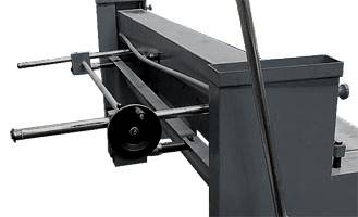 Рабочий стол гильотины снабжен с двух сторон упорами и линейками, облегчающими размещение заготовки. Для поддержки длинных листов гильотина снабжена выдвижным передним упором.