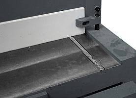 Ручной ограничитель глубины подачи листа оснащен миллиметровой линейкой. Перемещение упора бесступенчатое. Это позволяет точно задавать размер необходимой заготовки.