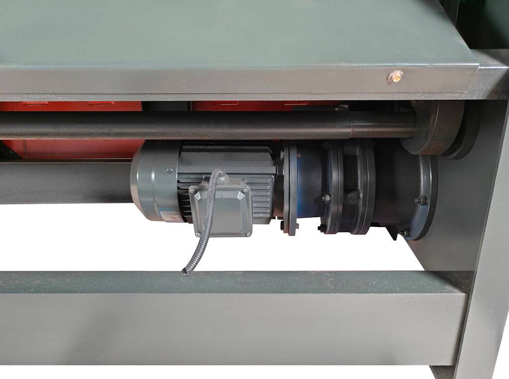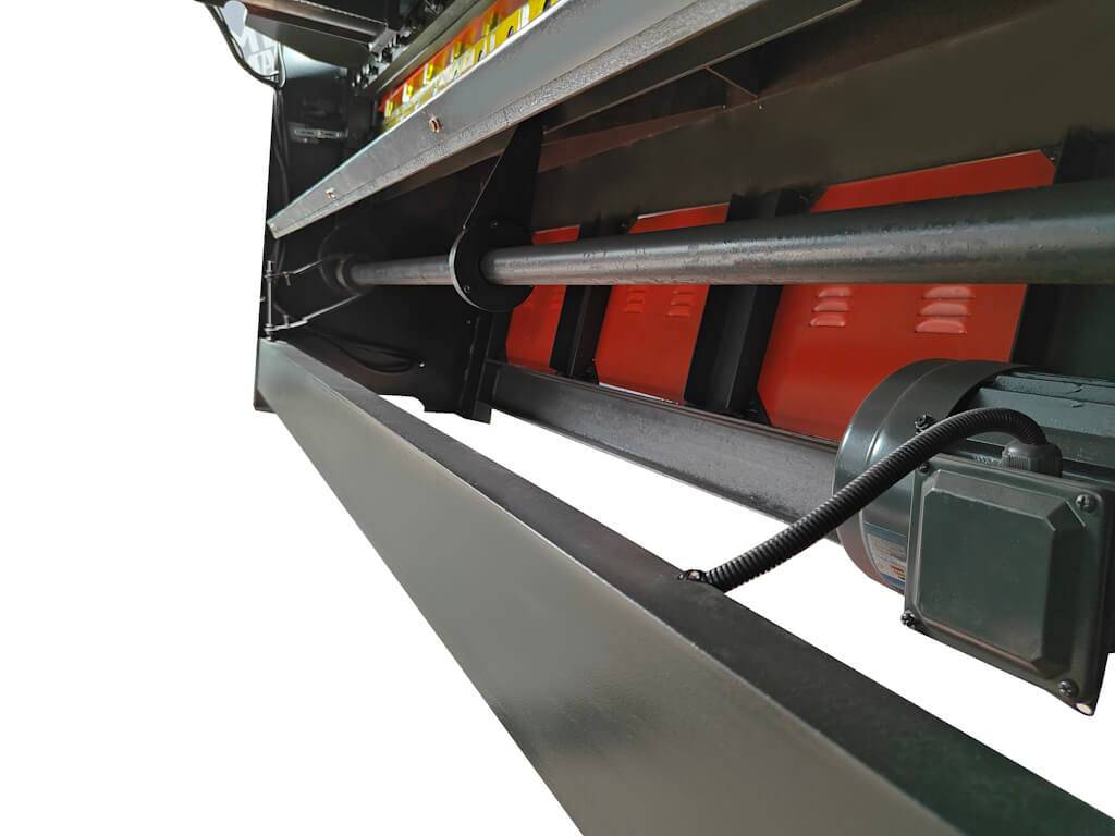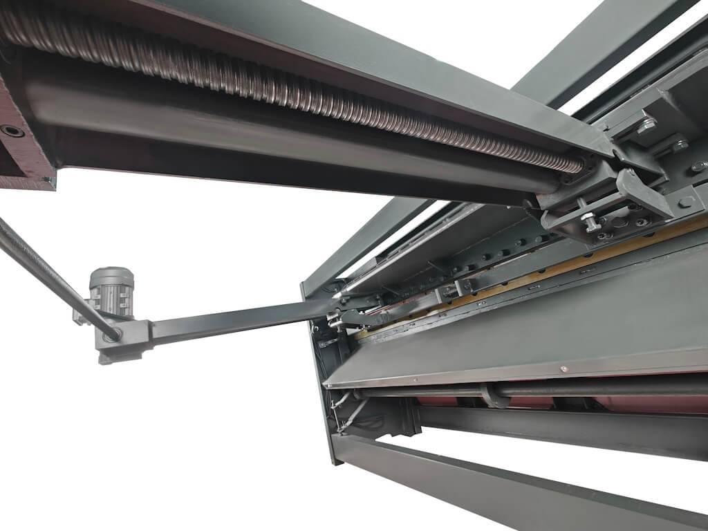 Приводной вал расположен под рабочим столом гильотины. Это обеспечивает компактную конструкцию и плавную работу станка.