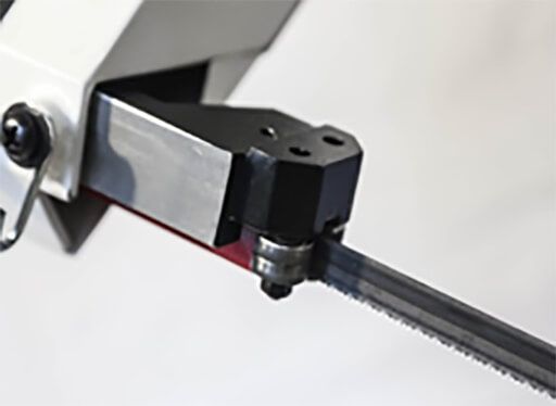 Перпендикулярность полотна обеспечивается за счет направляющих, в которые установлены подшипники. Вылет направляющих можно изменять под размеры заготовки.