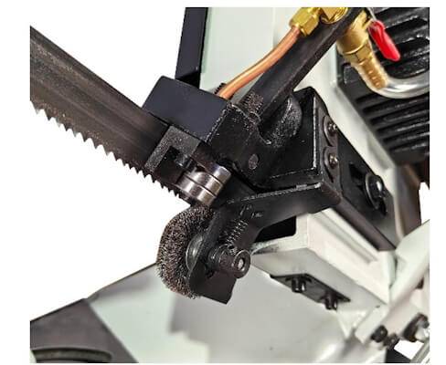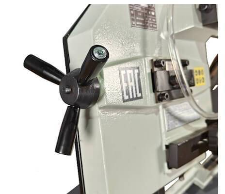 - Рабочий стол и пильная рама отлиты из чугуна, что обеспечивает необходимую жесткость конструкции, а также позволяет гасить часть вибраций, которые возникают в процессе работы ленточной пилы.