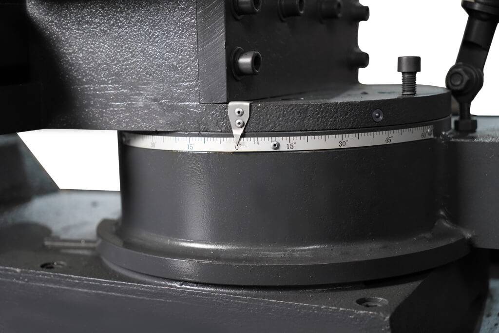 Metal Master BSM-330R SAF имеет возможность поворота пильной рамы на угол 45 градусов влево и на 60 градусов вправо. Величина угла отображается на специальной линейке.
