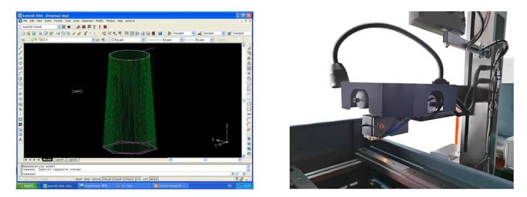 В стандартной комплектации станок имеет возможность резки под углом ±3° (возможность резки под углом ±15° и ±30° является дополнительной опцией). Рез под углом осуществляется с помощью ЧПУ и шаговых двигателей, расположенных на верхнем рукаве станка.