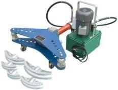 Трубогиб электрогидравлический ТГЭ-2 оснащен размыкаемой рамой, а также комплектом гибочных сегментов из стали размером от 1/2" до 2". Обеспечивает угол сгиба до 90 градусов, избегая деформации профиля и снижения его пропускной способности.