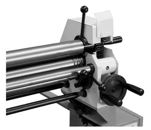 Задний вал можно регулировать для конусной и цилиндрической гибки.