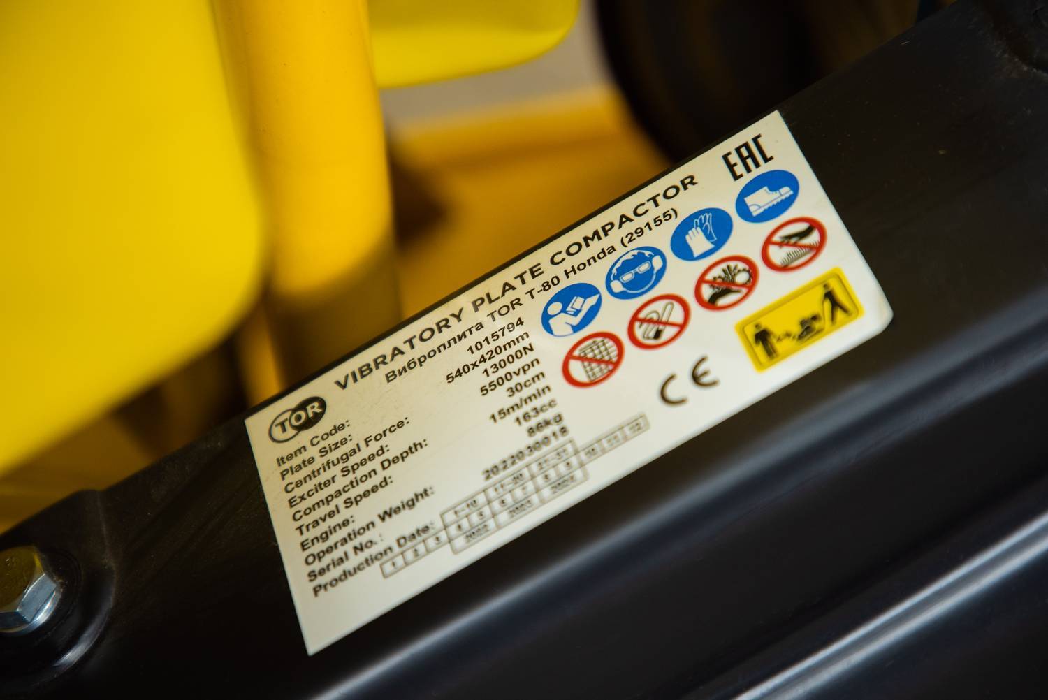 Виброплита TOR T-80 (29155) с бензиновым двигателем LCT 4,8кВт/6,5 л.с объемом 196 куб.см. – мощная виброплита среднего веса, для широкого спектра работ.